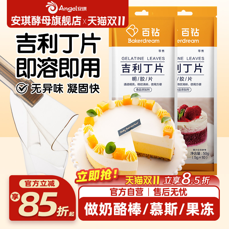百钻吉利丁片食用明胶家用自制奶酪棒布丁烘焙材料做慕斯蛋糕原料