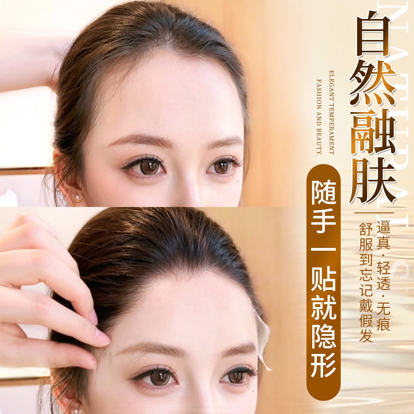 胎毛刘海假发女片头顶真发轻薄自然前额鬓角补发无痕发际线假发贴