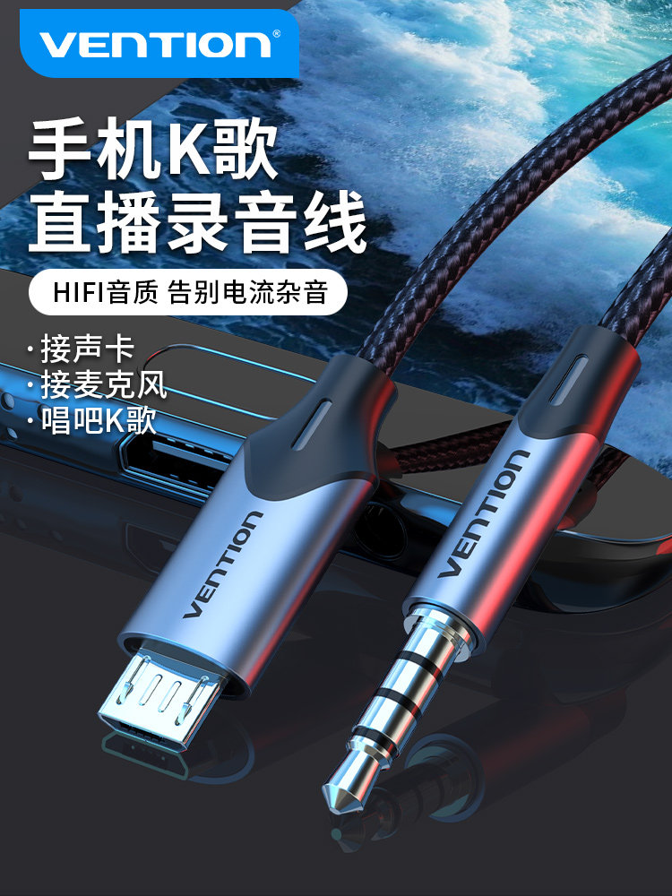 威迅录音线音频线V8声卡客所思唱吧直播连接麦克风话筒适用安卓手