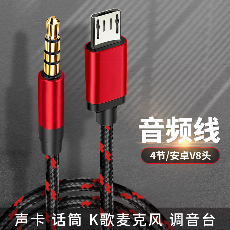 3.5mm转microusb音频线抖音快手直播V8声卡唱吧伴奏线录音线适用安卓苹果手机全民K歌小话筒麦克风连接线