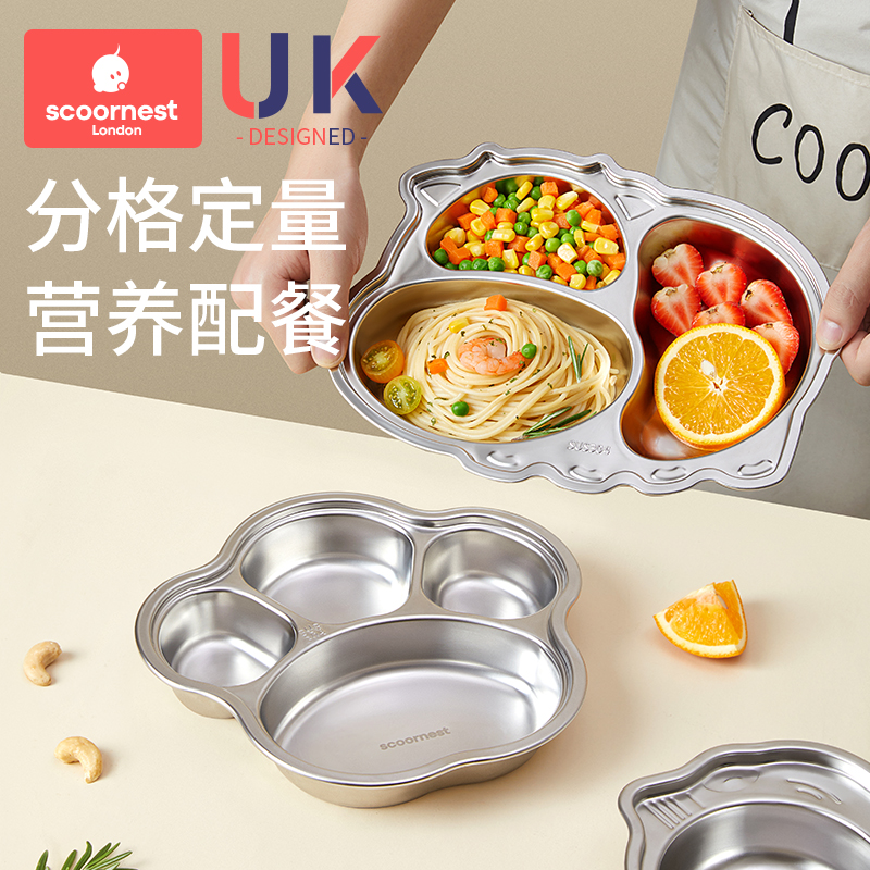 儿童餐盘食品级304不锈钢宝宝辅食盘家用吃饭分格菜盘小婴儿餐具