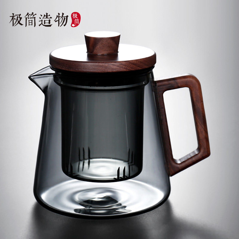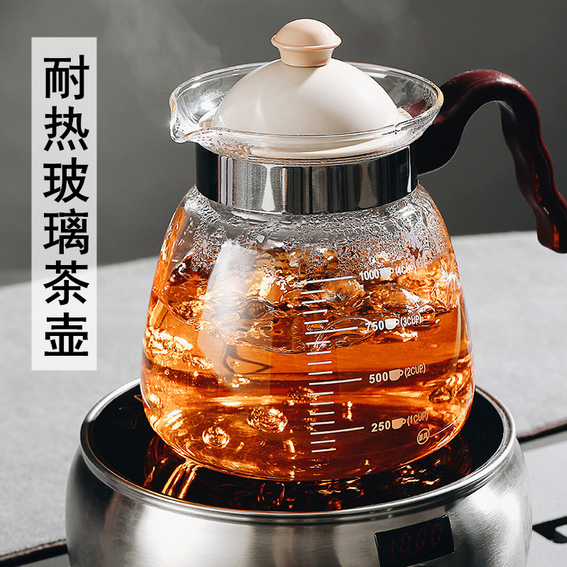 北大史玻璃泡茶壶 电陶炉煮茶 耐热玻璃茶壶八角木把手家用沏茶壶