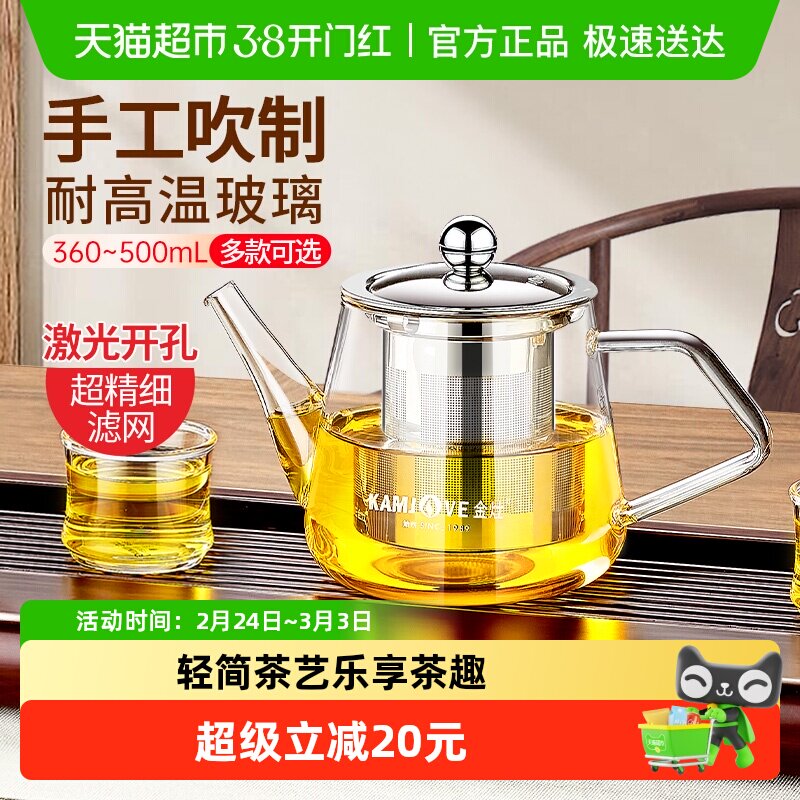 嘉美华如意壶玻璃茶壶耐热玻璃壶沏茶壶滤网304不锈钢过滤网水壶