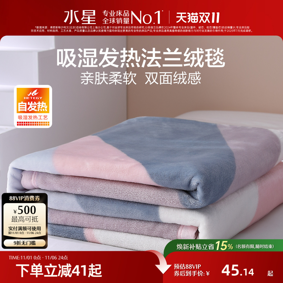 水星家纺法兰绒毯可水洗保暖毛毯办公室午休毯子空调毯床垫毯床品