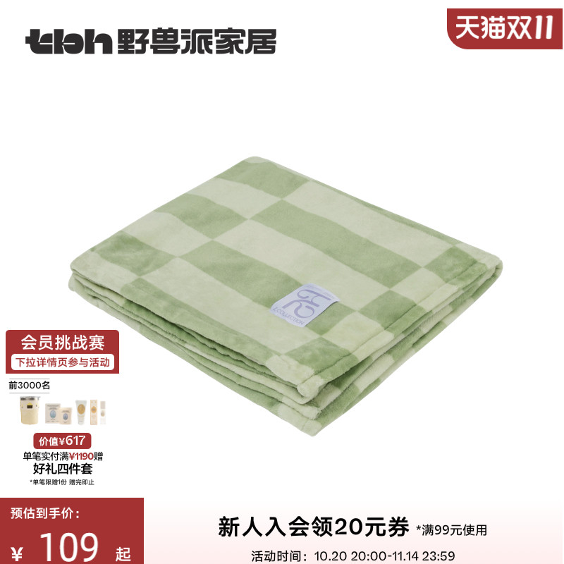 tbh野兽派家居棋盘格法兰绒毯子客厅沙发盖毯办公室午睡毯空调毯