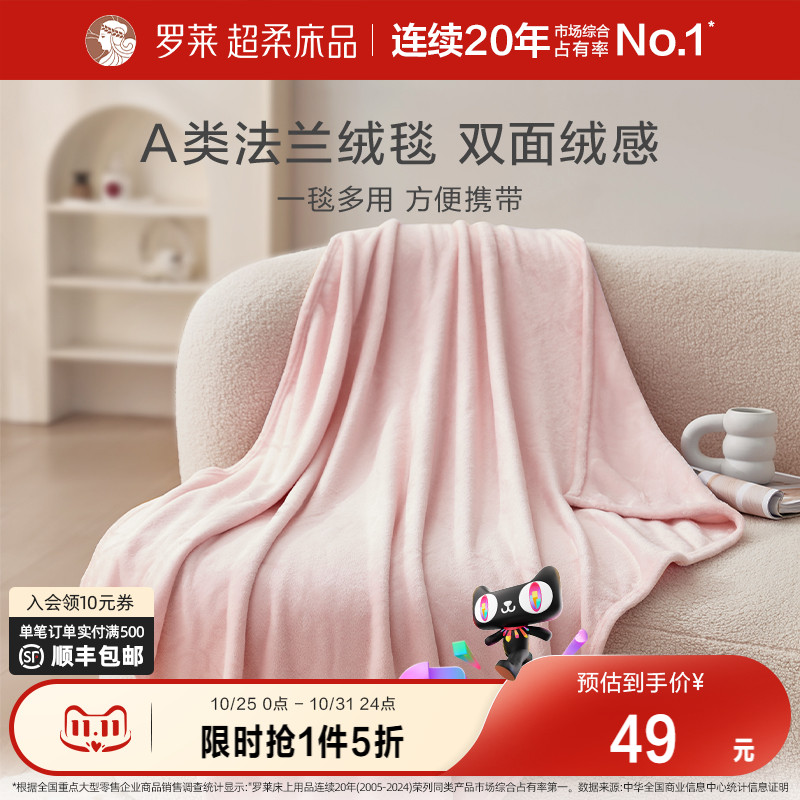 罗莱家纺超柔秋冬绒毯子多用毯空调毯学生宿舍休闲毯沙发盖毯毛毯