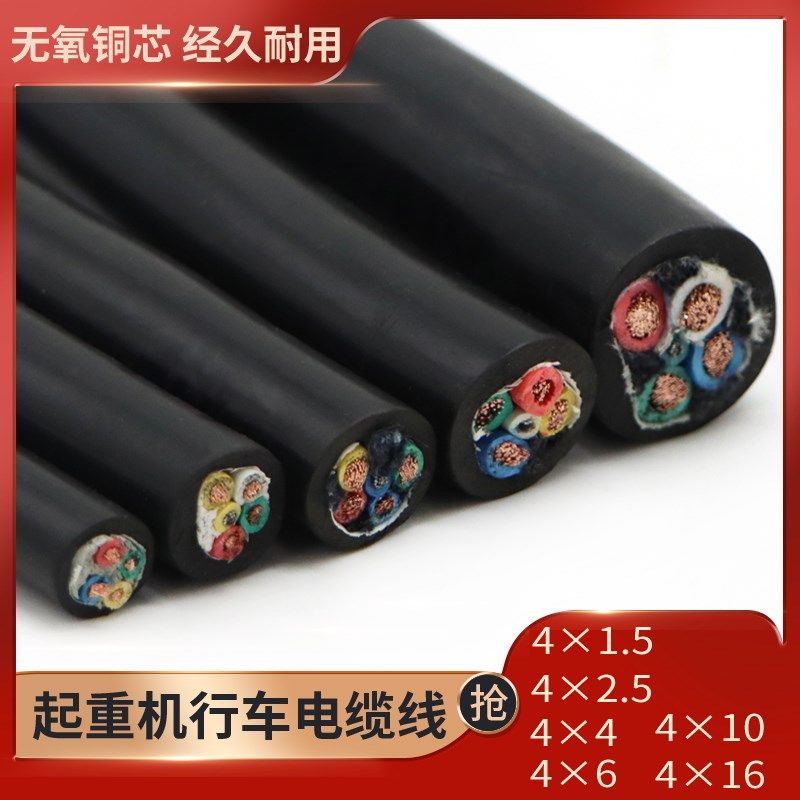 起重机行车专用圆 扁4芯电缆线4*1.5 2.5 4 6 10 16平方纯铜线缆