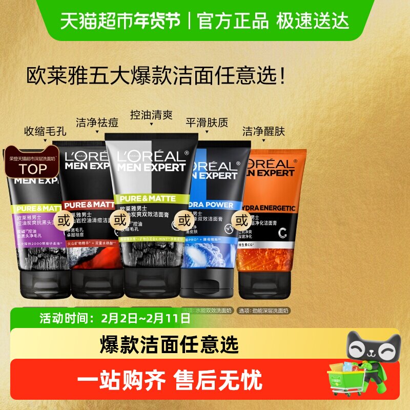 欧莱雅男士洗面奶劲能深层洁净控油保湿净化洁面膏清洁毛孔100ml