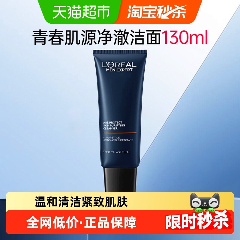 欧莱雅男士青春肌源洗面奶净澈洁面乳清洁紧致毛孔氨基酸130ml