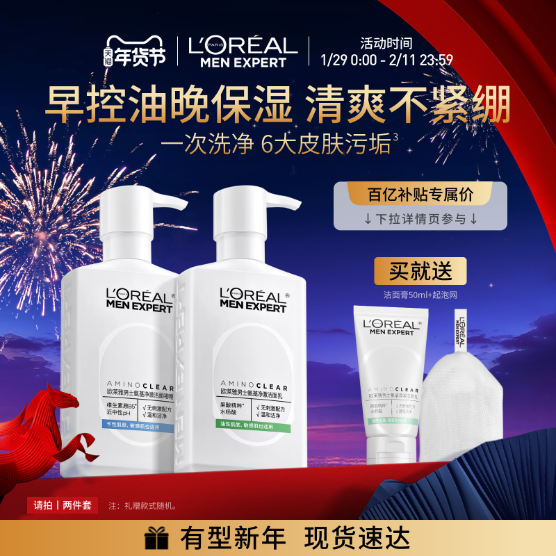【百亿补贴】欧莱雅男士专用氨基酸洗面奶控油保湿男生洁面乳清爽