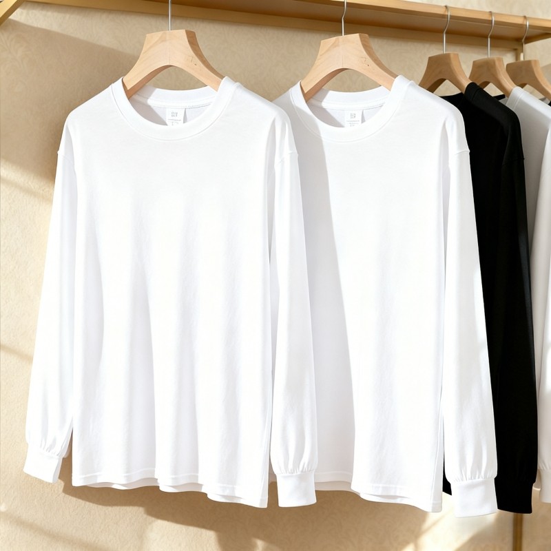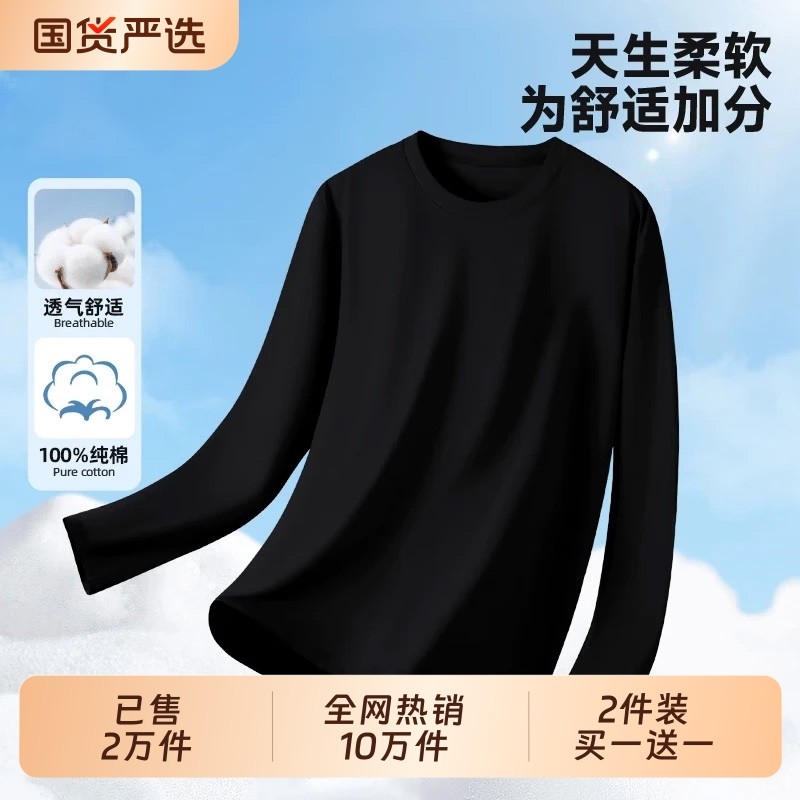 2025新款重磅纯棉长袖t恤男女款宽松纯色休闲纯色内搭圆领打底衫