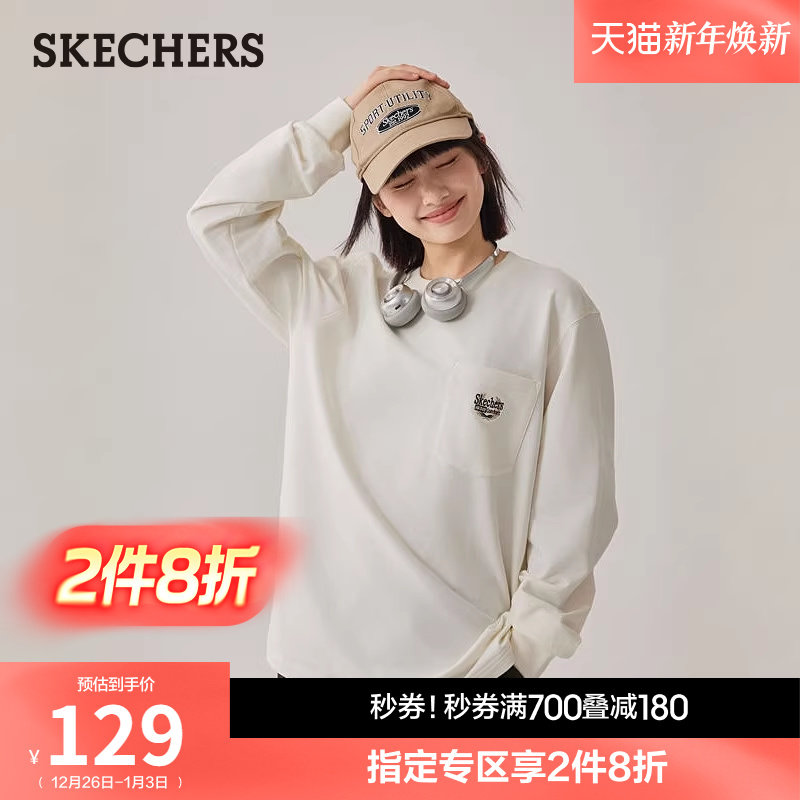斯凯奇2025秋冬男女款舒适长袖T恤圆领基础款百搭休闲运动打底衫