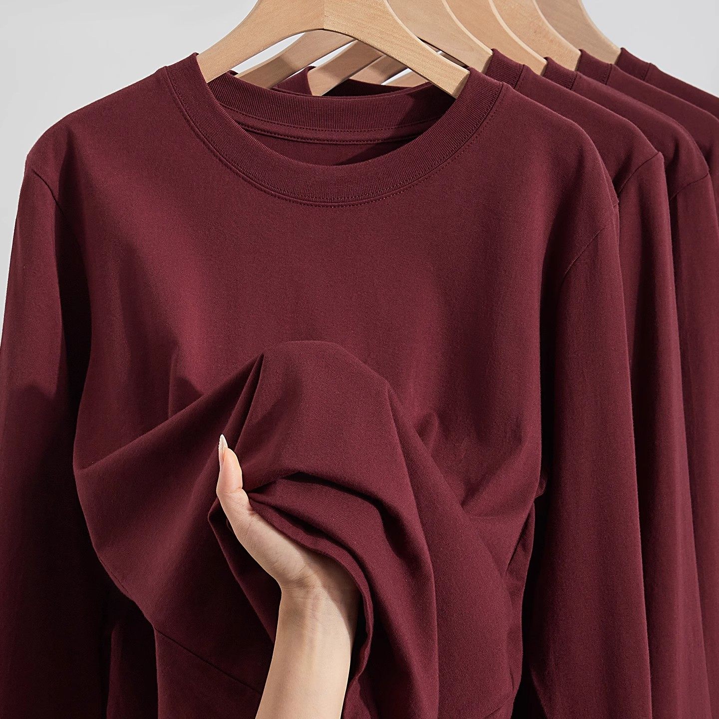 - 宽松竹节棉长袖t恤女