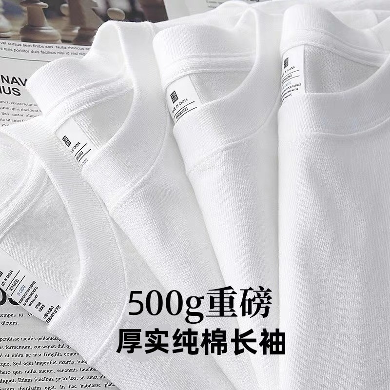新疆棉 500G重磅纯棉长袖t恤日系纯色上衣休闲打底衫纯白t男女款