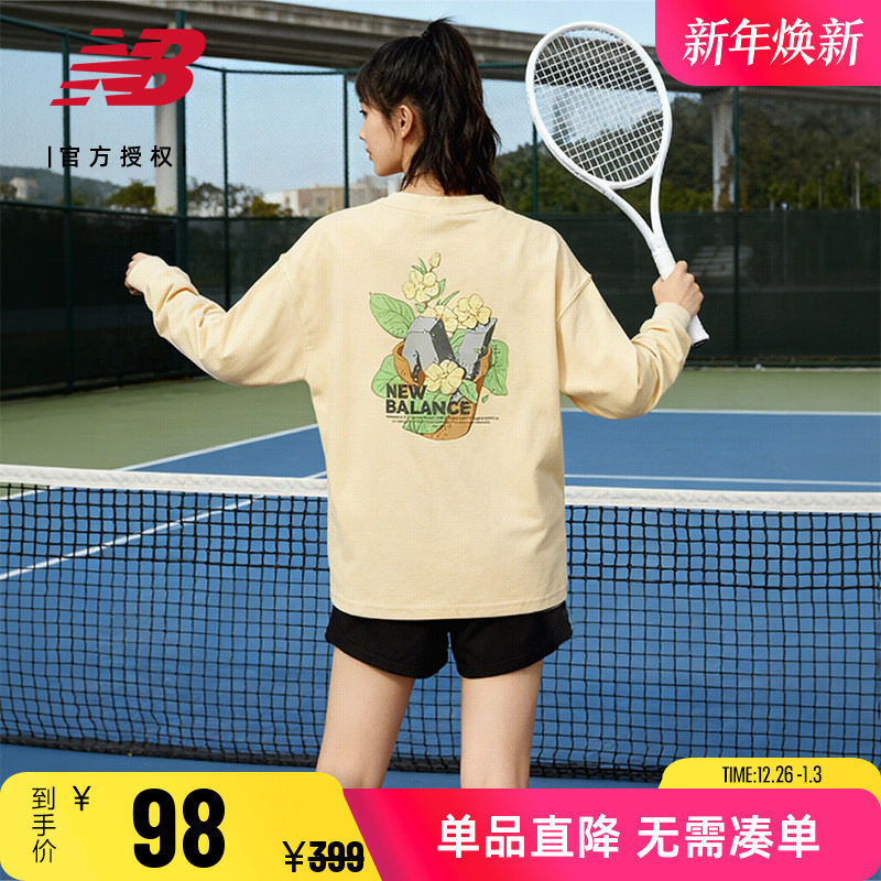 New Balance NB奥莱女款休闲长袖T恤棉打底衫纯棉卫衣女AWT31371
