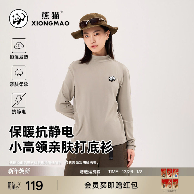熊猫骆驼户外圆领休闲抓绒长袖T恤男女款保暖百搭新款高领打底衫
