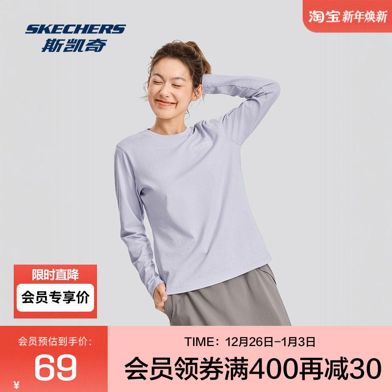 斯凯奇秋季新品女款防紫外线长袖T恤衫秋时尚休闲舒适上衣打底衫