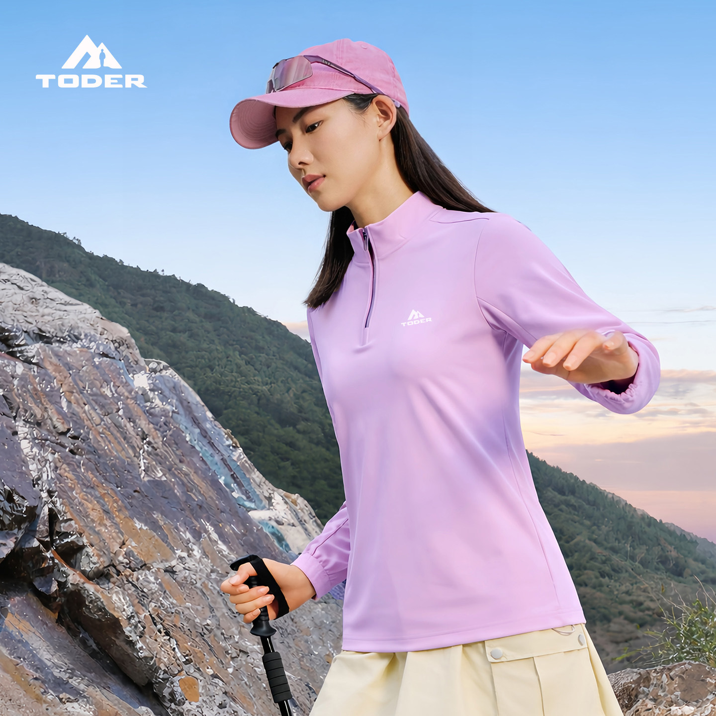 探野者TODER户外半高领速干长袖T恤女款春秋季休闲打底衫透气舒适