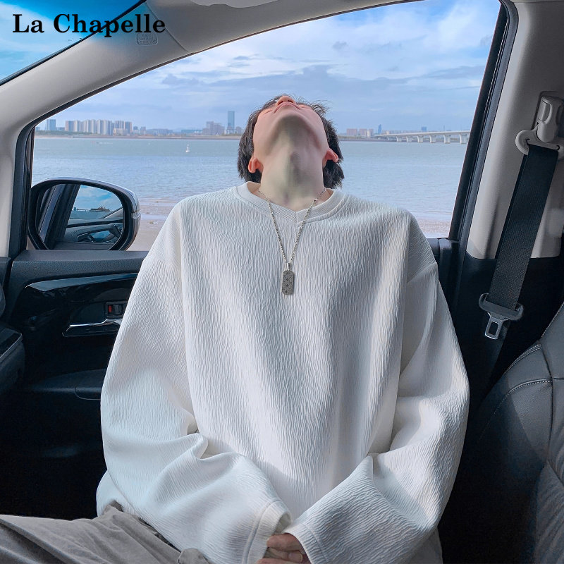 拉夏贝尔肌理感V领长袖T恤秋冬宽松打底卫衣松弛感男女款休闲内搭