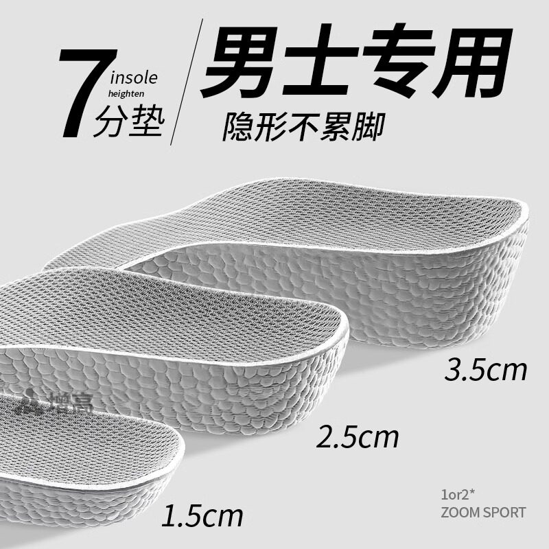 2双装 内增高鞋垫运动舒适增高垫硅胶隐形男式女式透气半垫3.5cm