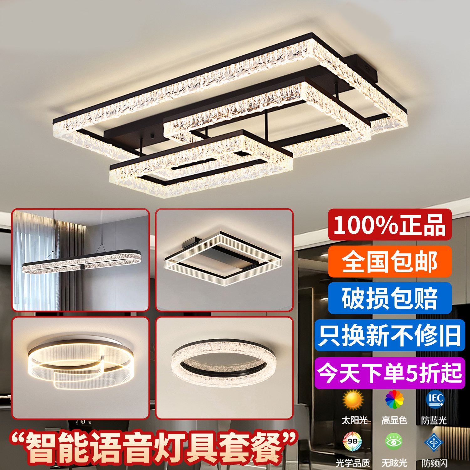 客厅水晶吸顶灯现代简约led护眼客厅卧室吸顶灯全屋灯具套餐组合