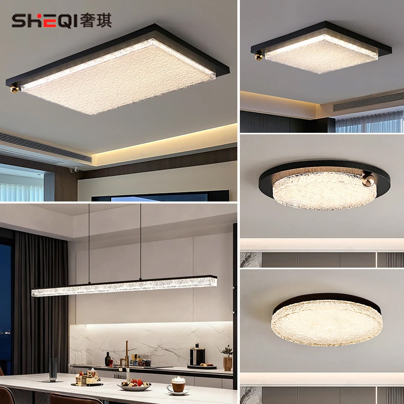 意式客厅主灯高级感轻奢冰裂纹吸顶灯2025新款全屋灯具套餐组合