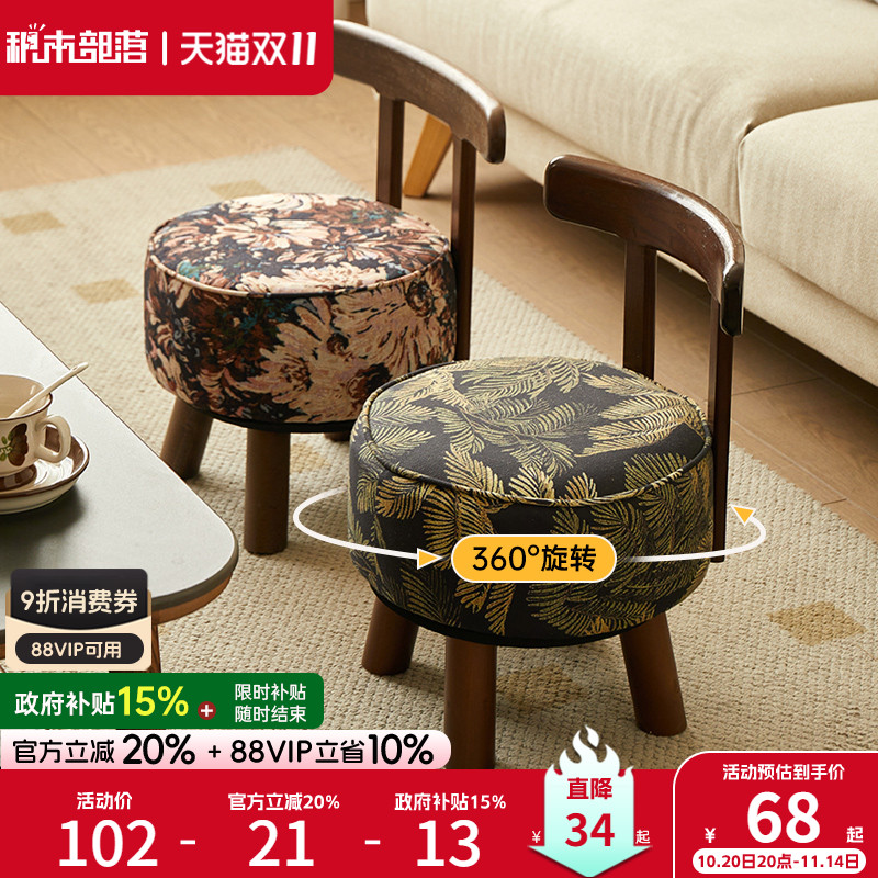 实木旋转换鞋凳家用矮凳客厅茶几小凳子靠背小椅子休闲沙发凳板凳