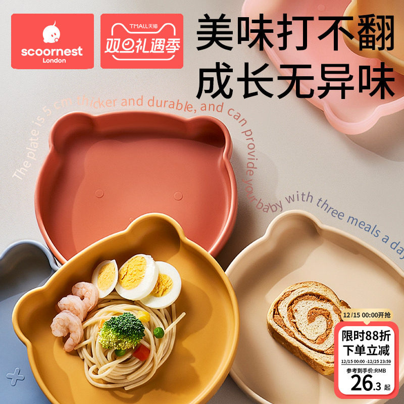 宝宝餐盘硅胶吸盘一体式婴儿辅食碗小孩餐具吃饭专用儿童餐具套装