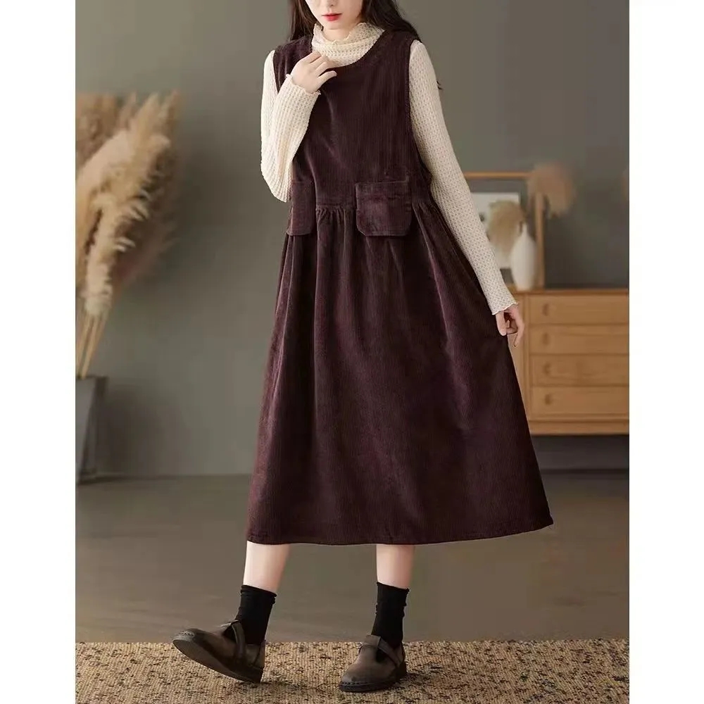 2024秋冬新款灯芯绒背带连衣裙女气质复古感小众宽松中长款背心裙