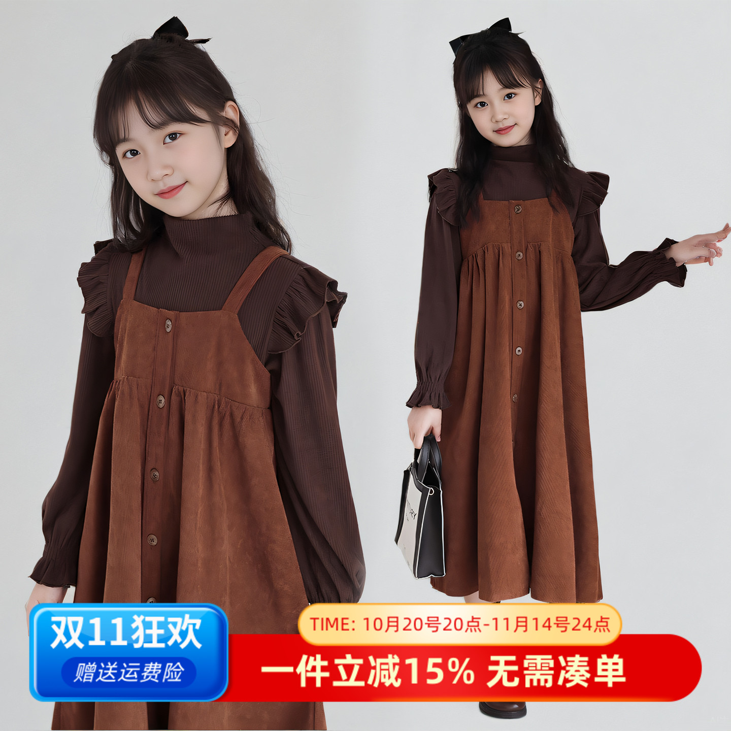 女童秋冬背带裙套装韩版洋气中大童公主美拉德系灯芯绒长裙两件套
