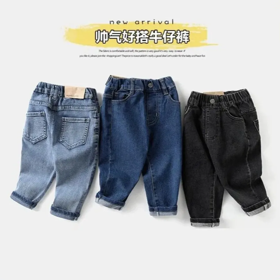 男童2024春秋冬新款牛仔裤洋气弹力儿童装男孩加绒宽松薄款长裤子