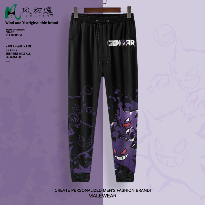 动漫周边卫裤男二次元卡通印花秋冬新款长裤子加绒加厚束脚休闲裤