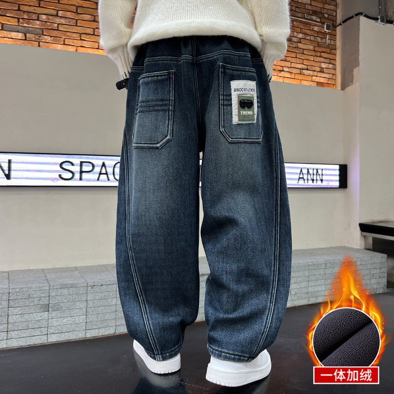 男童裤子秋冬2025新款时髦宽松加绒长裤中大童秋装韩版儿童牛仔裤