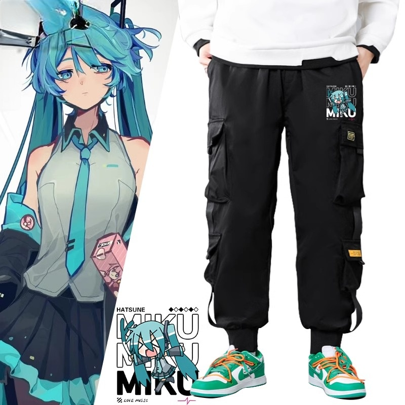 初音未来联名秋冬季长裤子男宽松束脚工作裤工装裤潮流百搭休闲裤