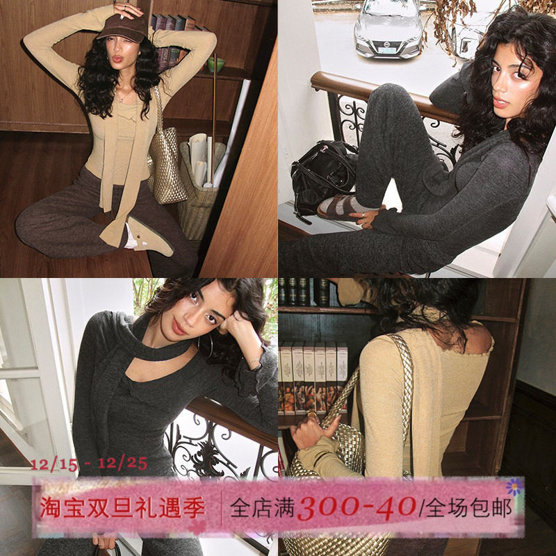 PEMPL 柔软亲肤修身系带针织抹胸背心女慵懒风休闲长裤时尚套装