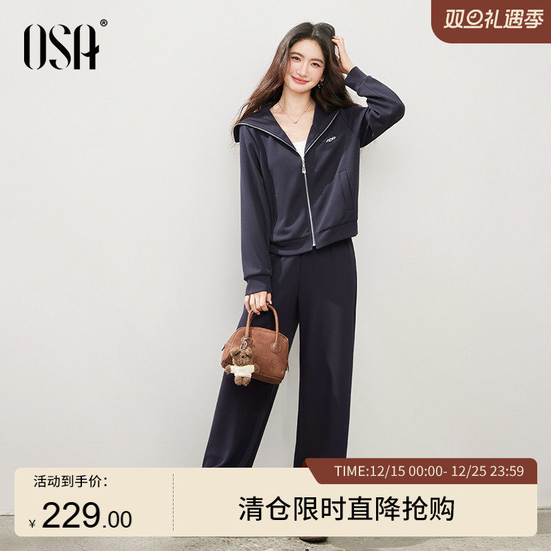 OSA欧莎松弛休闲套装女2025秋新款短外套直筒长裤修身显瘦一整套