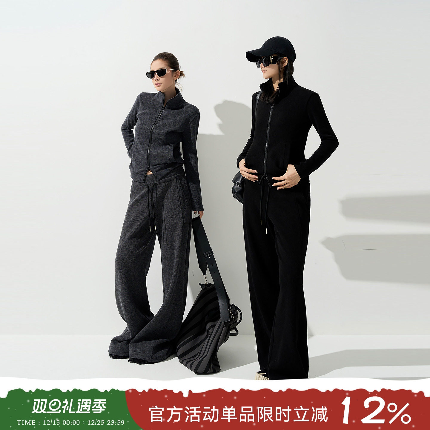 LINY LIBERTY 25AW 设计感针织双面绒修身拉链外套女休闲长裤套装
