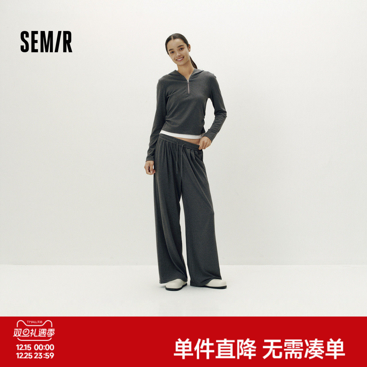 [商场同款]森马套装女直筒长裤修身假两件短上衣2025新款秋两件套