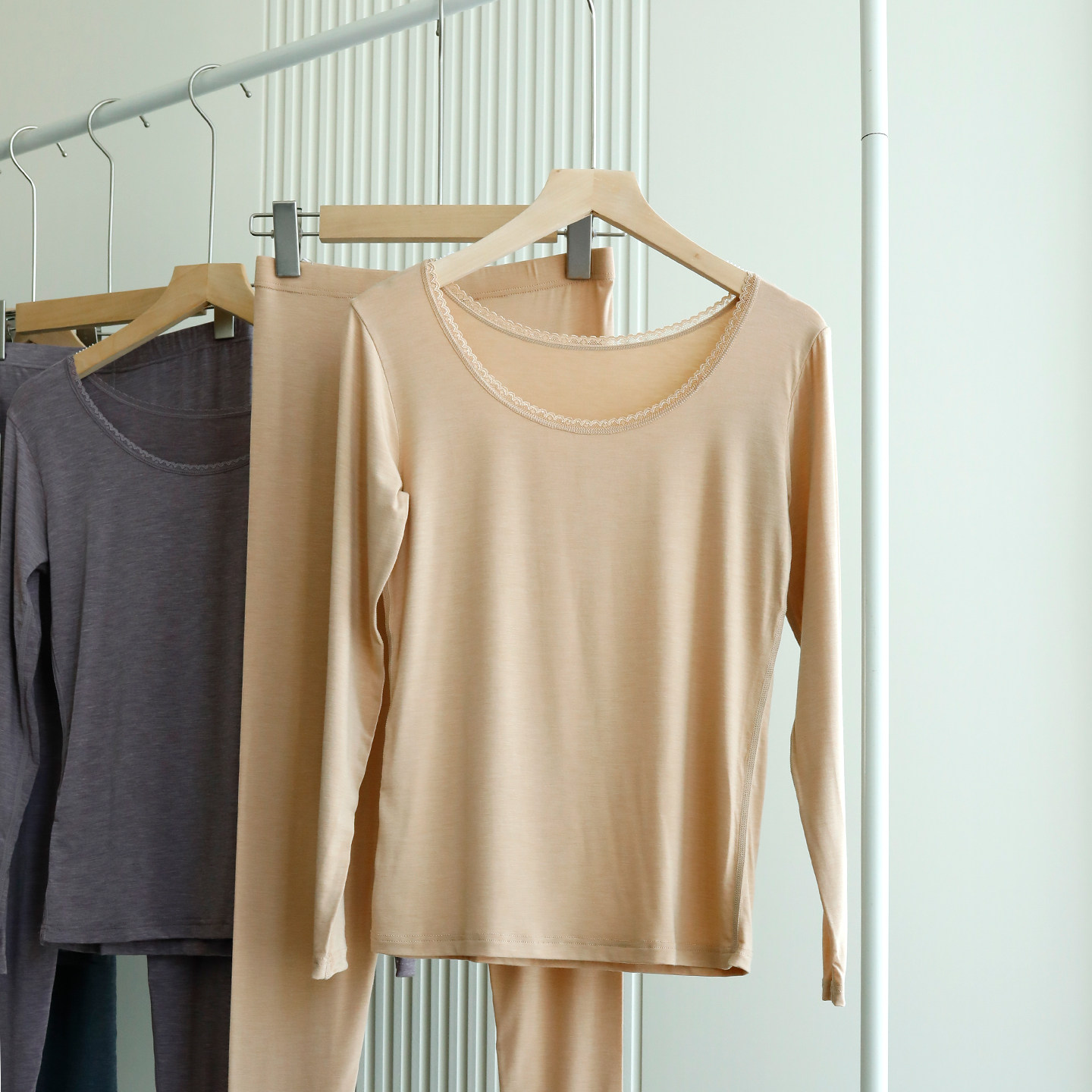佳妮婷秒热保暖圆领修身长袖长裤莫代尔薄款女秋衣秋裤7315套装