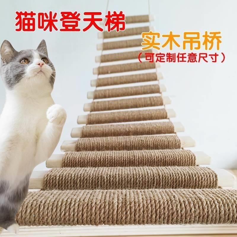 猫爬梯剑麻猫咪爬架蹬天梯爬梯桥梯两户外爬架用实木麻绳磨爪神器