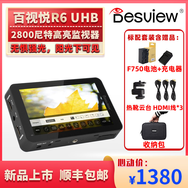 百视悦R6 2800尼特5寸超高亮HDMI相机监视器全触屏3D-LUT导入监看