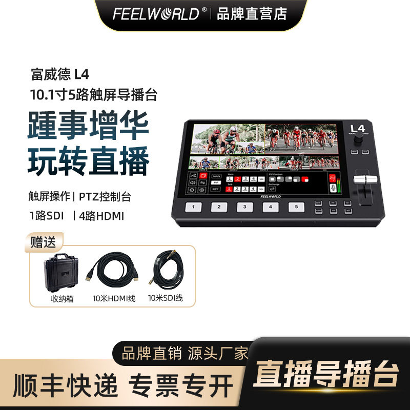 富威德 L4切换台10.1寸高清触摸屏HDMI多机位高清视频推流抖音直播SDI导播台 5通道电影电视剧监视器