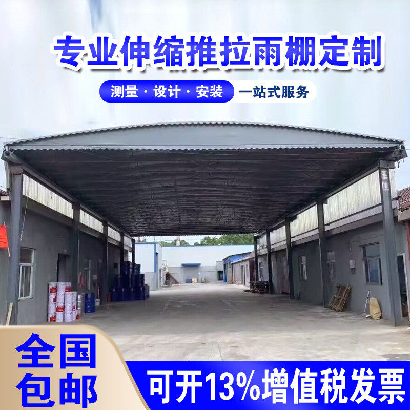 推拉雨棚大型防雨移活动帐篷伸缩遮阳棚户外仓库排档电动停车雨蓬