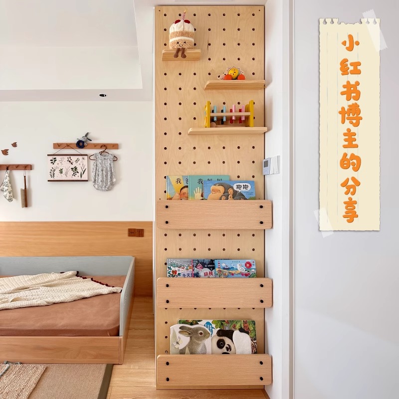 实木洞洞板置物架书架层板多层收纳架装饰挂板架配件书报架展示墙