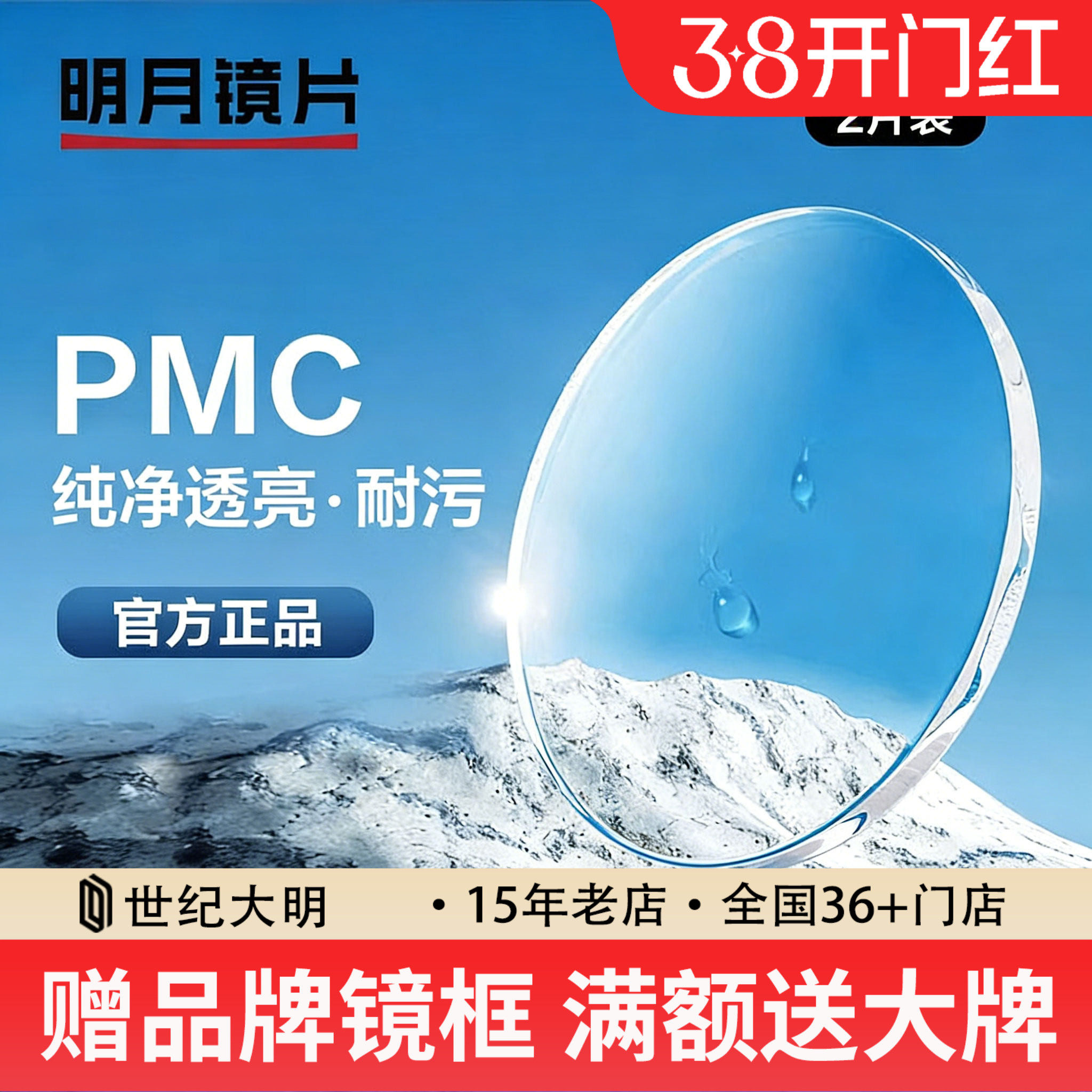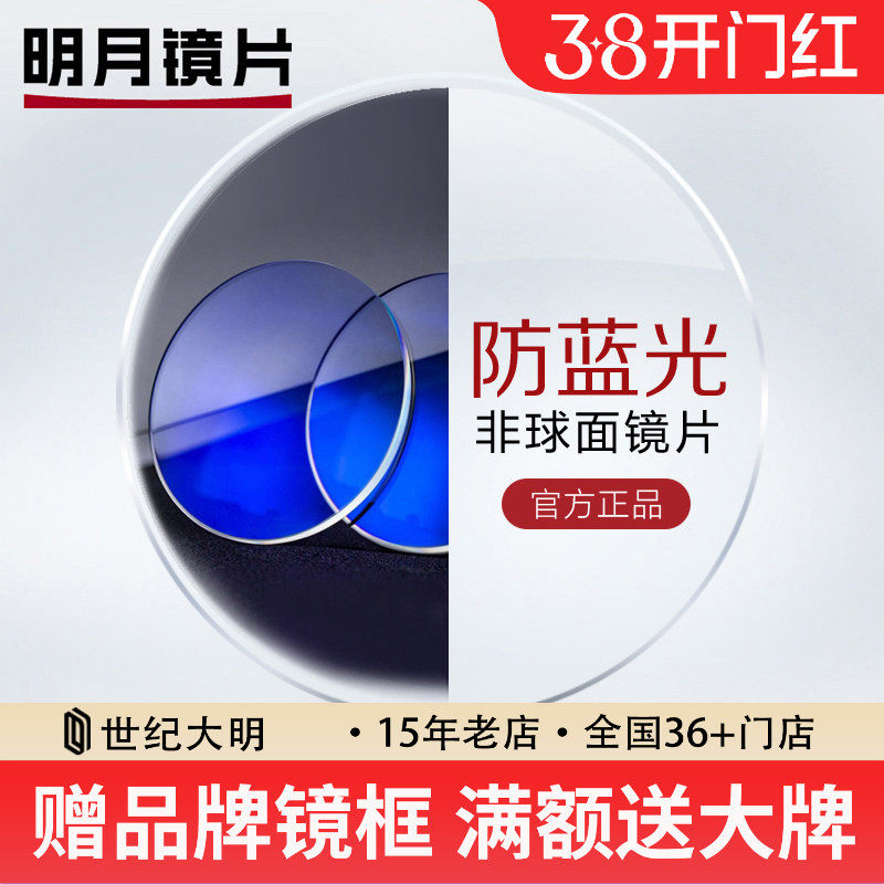 明月镜片官方旗舰1.74超薄非球面配眼镜防蓝光近视眼镜片配镜PMC