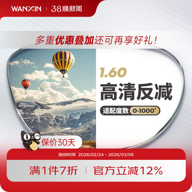 万新镜片1.74超薄非球面防蓝光防辐射高度数近视镜片配眼镜旗舰店