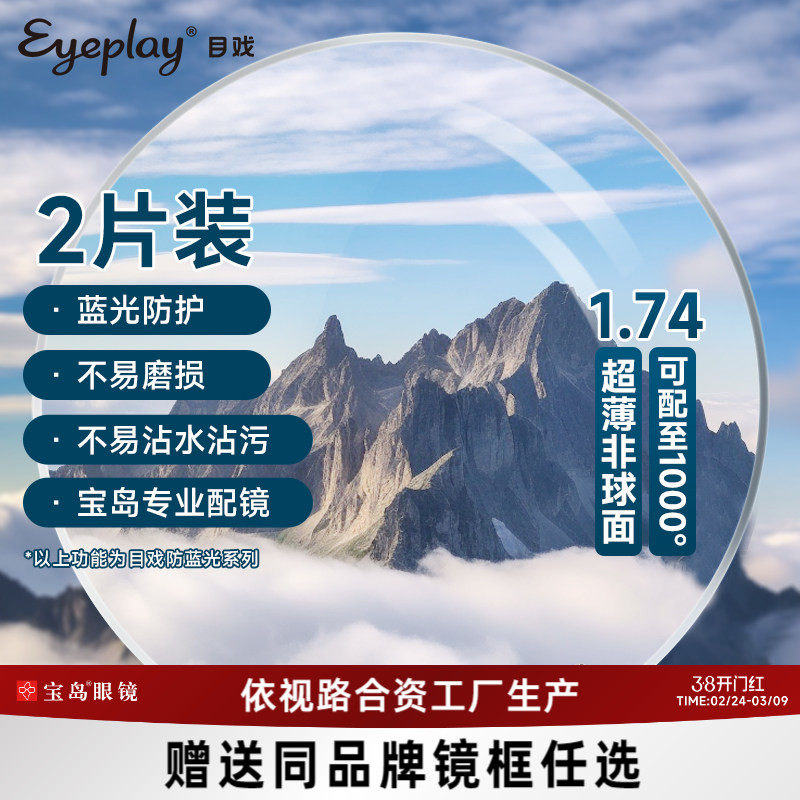 目戏眼镜片可选1.74防蓝光防雾变色近视镜片眼镜换镜片宝岛旗舰品