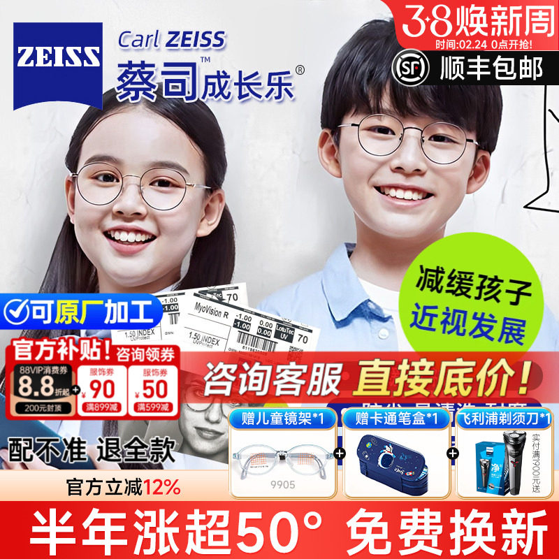蔡司成长乐儿童防控离焦近视镜片钻立方防蓝光铂金膜学生配眼镜片