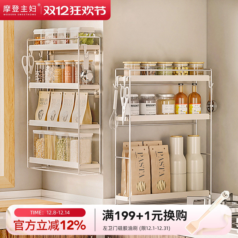 摩登主妇厨房置物架壁挂免打孔调料架多功能盐调味罐调料品收纳架