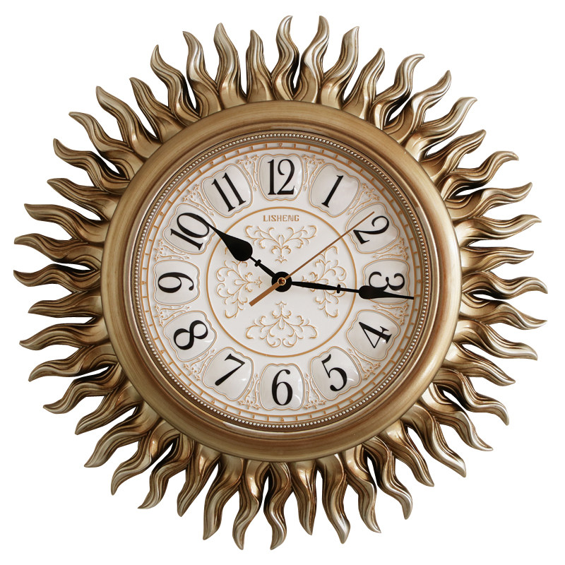 太阳欧式简约钟表创意挂钟个性家用时尚时钟美式客厅表静音石英钟